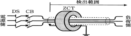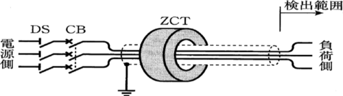 引出用ケーブル(片端接地)の場合、図2 のように電源側にある遮へい層接地線はZCT を通して負荷側に接地する。